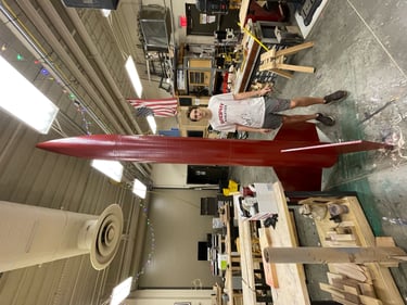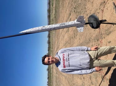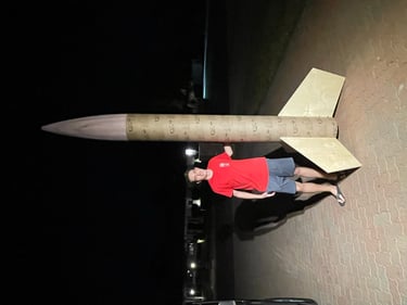High Power Rocketry is a classification of rocketry that you need a license from one of the National Rocketry Bodies (Tripoli or NAR) in order to purchase the larger motors for high power rocketry. These don't get launched in a park, they're at least 16x more powerful than what you should be reasonably launching there. Bremer currently holds his Level 2 High Power Rocketry Certification, and is working towards the final level, Level 3 by the end of 2026. The large red rocket on this page is over 12 feet tall and a foot in diameter, and was launched in 2024. During high school as the rocketry club president, Bremer oversaw the building, launching, and recovery of over 30 Level 1 certification flights. I've attended a multitude of national launches such as LDRS and BALLS. View a gallery of my rocketry experience below.