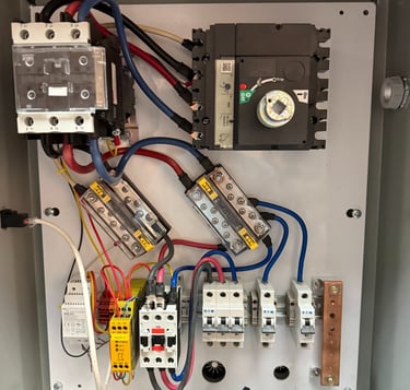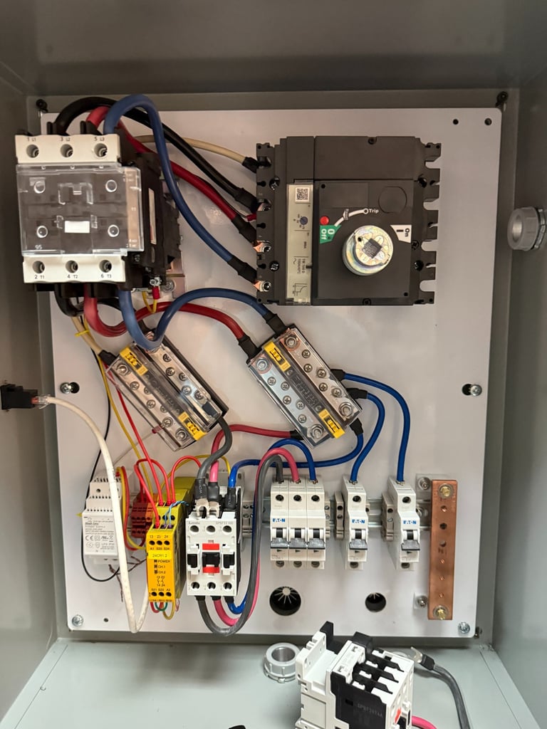 I wired up the 3 Phase power distribution box for a machine that is currently operating on a factory floor. I also did the schematic and sourced the right components to make sure that the control box always failed safe. All of this controlled via a intuitive graphical interface.